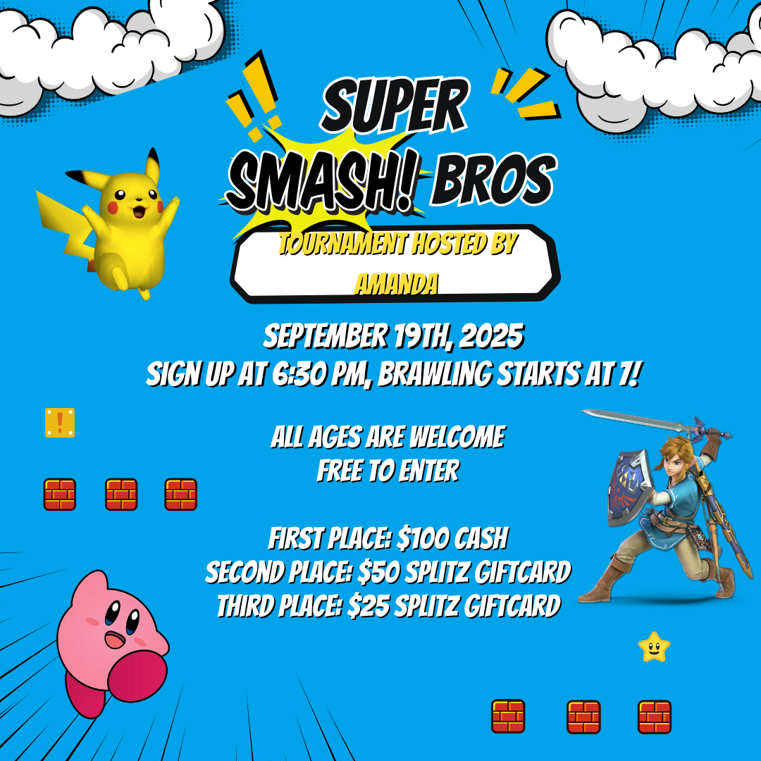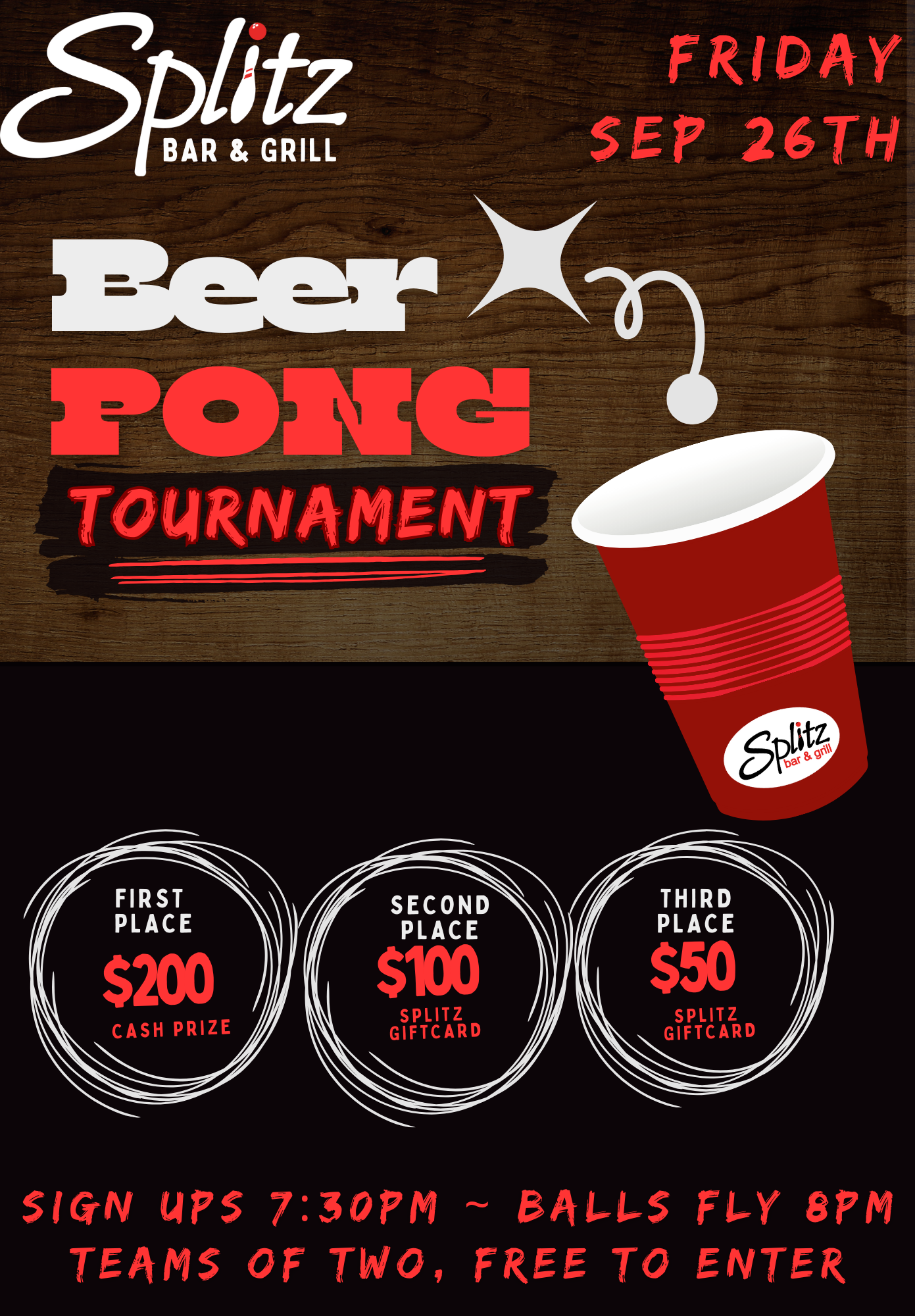 Signs up at 6:30pm and play begins at 7pm. 1st place=$100, 2nd place=$50 spltiz gift card and 3rd=$25 splitz gift card